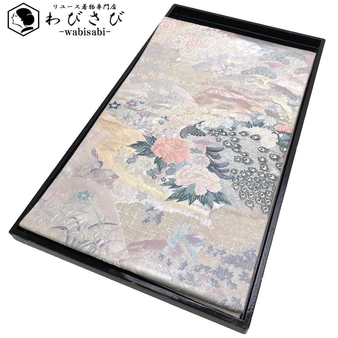 - 袋帯 孔雀 四季の花模様 金銀糸 O-5390 着物 きもの kimono 和服 和装 中古 リサイクル着物 【送料無料】