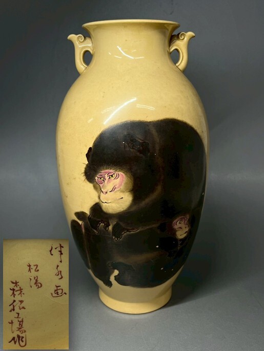 - 作家物 森脇乙松 申 猿 骨董 置物 飾物 伝統工芸品 芸術 古美術 花瓶 花器 時代物 花生 花入 花立 共箱 旧家蔵出 長崎買取