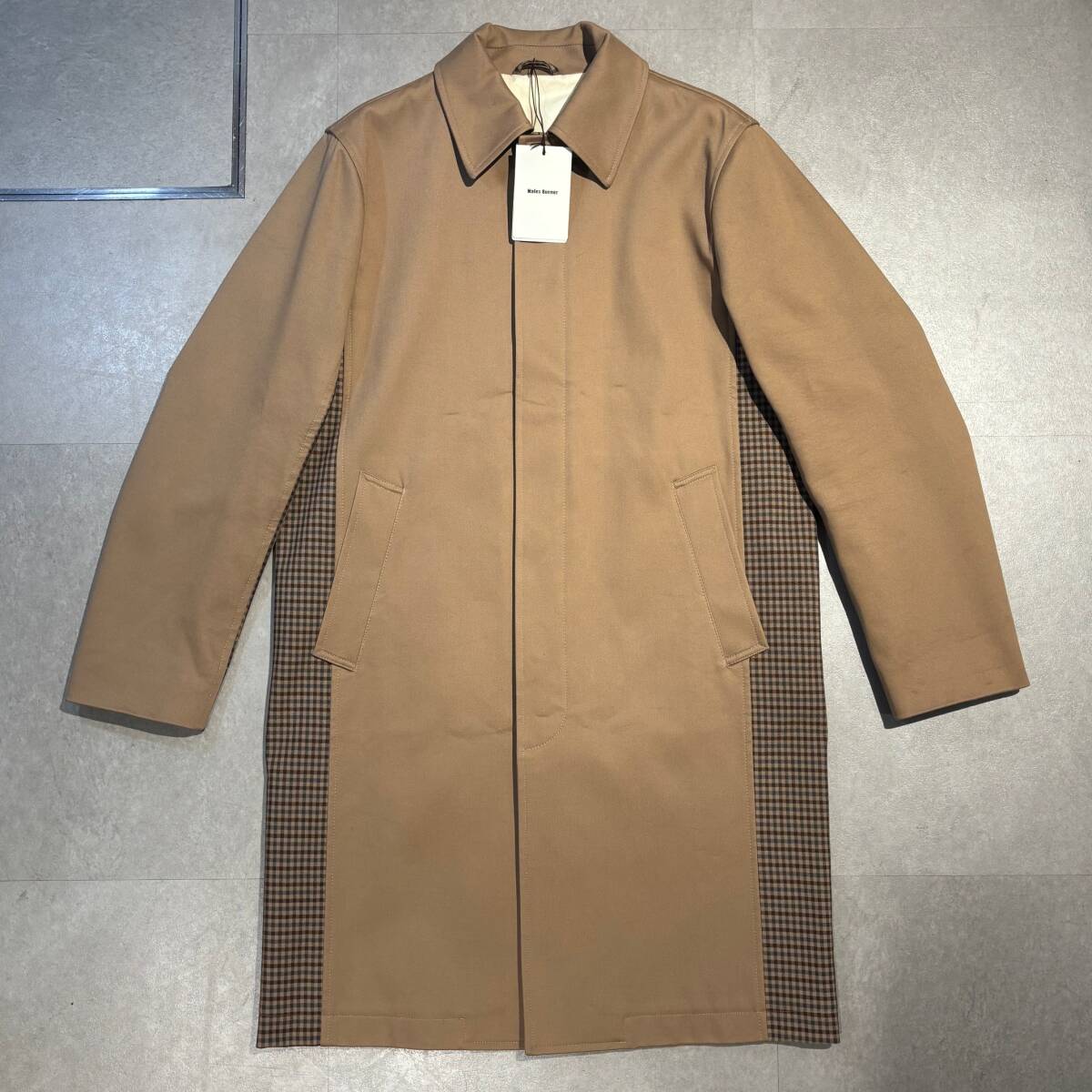 - Wales Bonner ウェールズボナー 24AW Bonded Check Tenor Jacket ステンカラーコート UA24CO07-CO03-800 ベージュ size:XS【表参道A08】