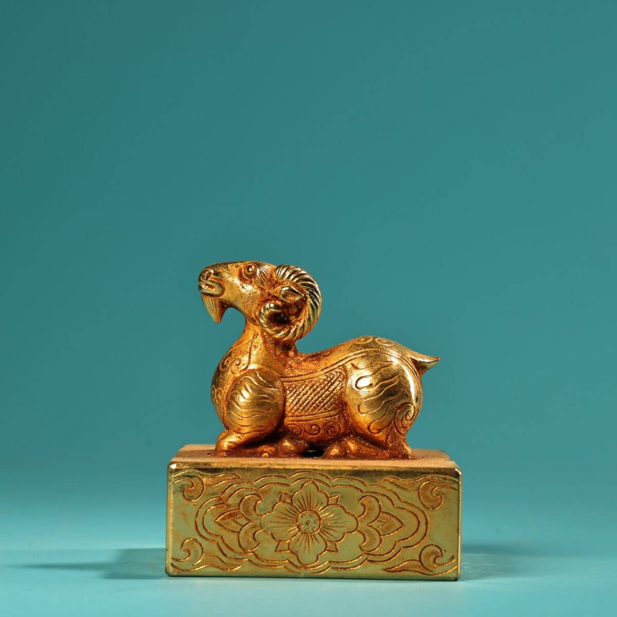 - 『館蔵珍品 銅製 塗金 羊印章 置物 賞物』稀少珍蔵品 古賞物 貴重物品 収蔵品 中国古美術 時代物 古董品