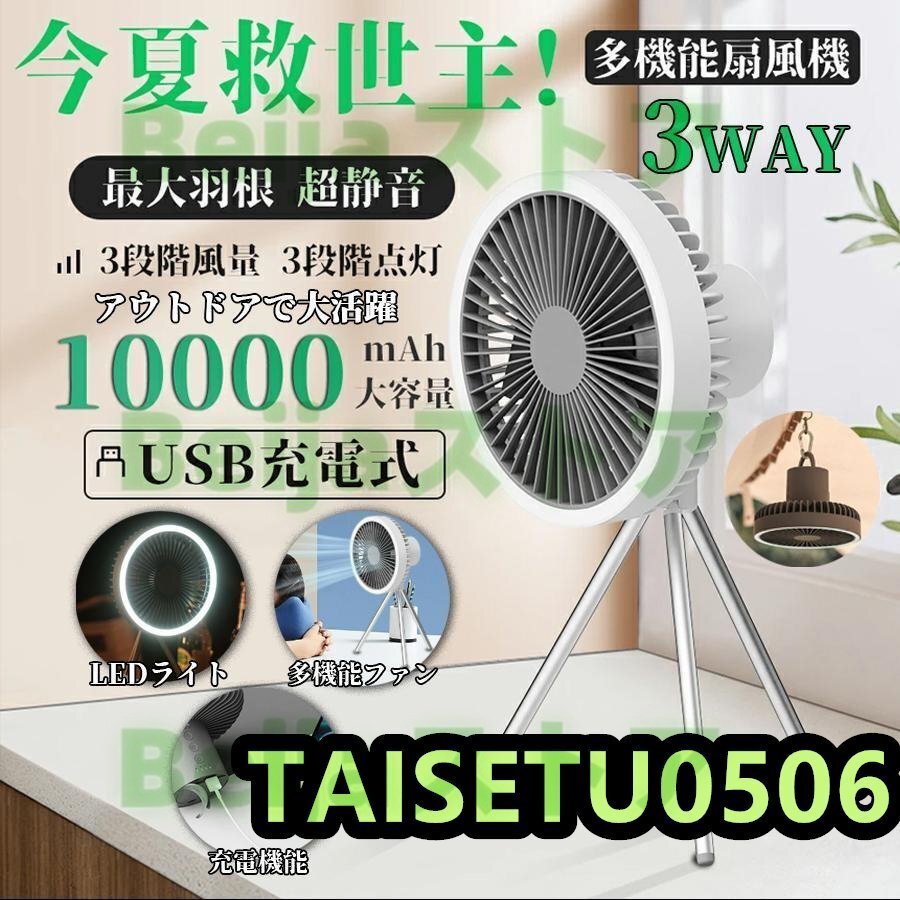 > 扇風機 サーキュレーター 卓上扇風機 DCモーター 10000mAh USB充電 キャンプ アウトドア 小型 ledライト ポータブル ファン 省エネ 吊り