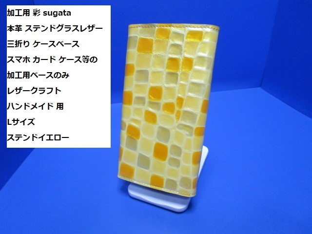 - 加工用 彩 sugata 本革 ステンドグラスレザー 三折り ケースベース スマホ カード ケース等の加工用ベースのみ Lサイズ ステンドイエロー@