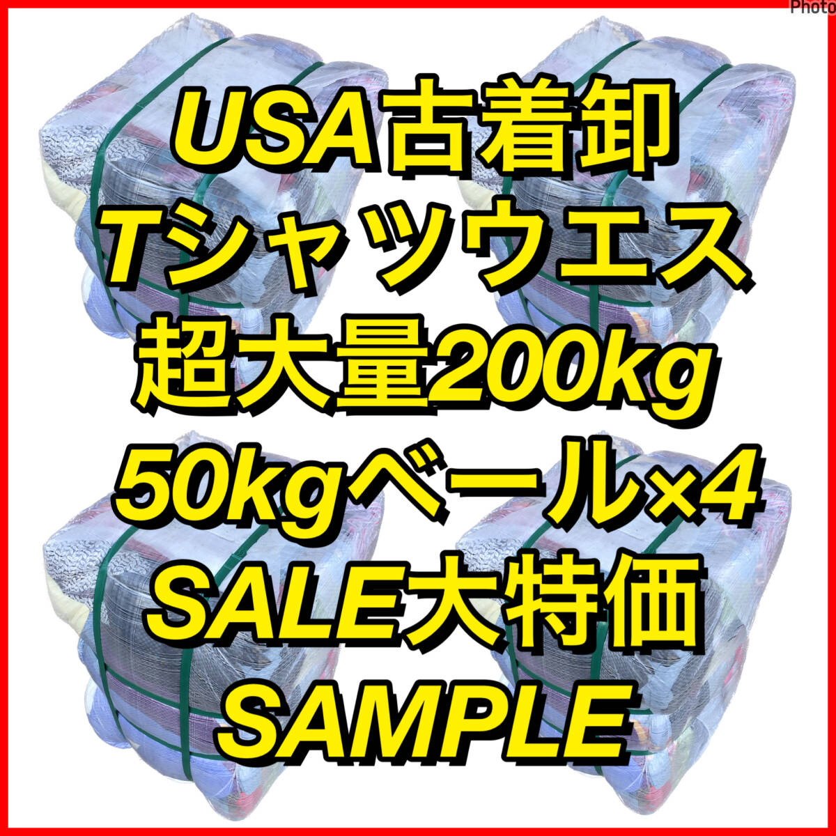 > 【Tウエス4】★4ベールセット★ アメリカ古着卸 TシャツB品200㎏ベール商品 ボロ布リメイク商材 作業着 板金 車屋 塗装 作業着 掃除 雑巾
