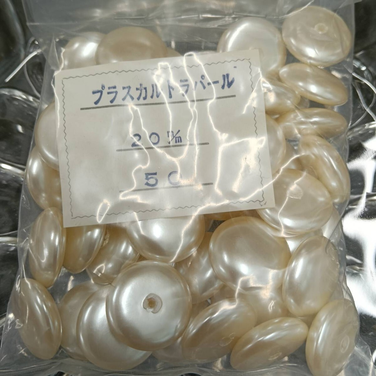 > ☆未使用 大量 パール カボション ラウンド 約114g 20mm ホワイト 白 イミテーション 大粒 ヴィンテージ アクセサリー ネックレス B-351