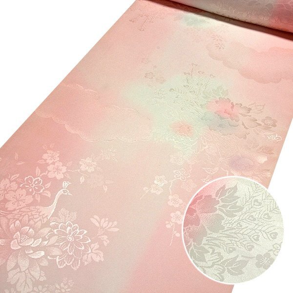 - [和楽屋] 訳あり■「振袖用 長襦袢」孔雀 花模様 振りぼかし 袖ボカシ 美しいボカシ染め 反物 正絹 襦袢■