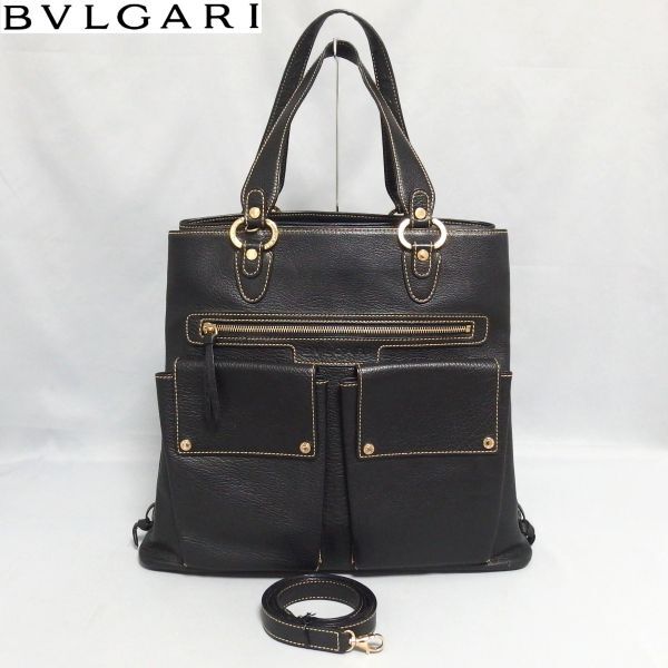 - 良品★BVLGARI Becky bag 2Way ショルダー トートバッグ ハンドバッグ レザー 黒 ロゴ ベッキー バッグ ブルガリ★