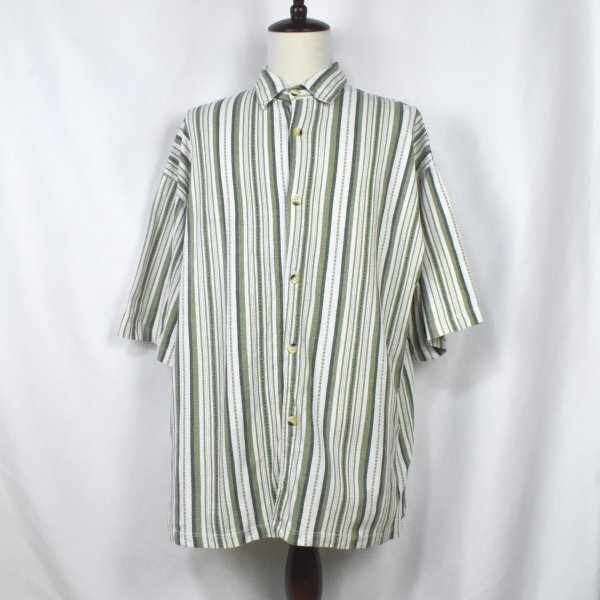 - 90sUSA古着 TARIQUE SHIRT COMPANY ビンテージ ビッグ ストライプ コットンシャツ sizeXL 大きいサイズ 半袖シャツ 90年代 アメリカ