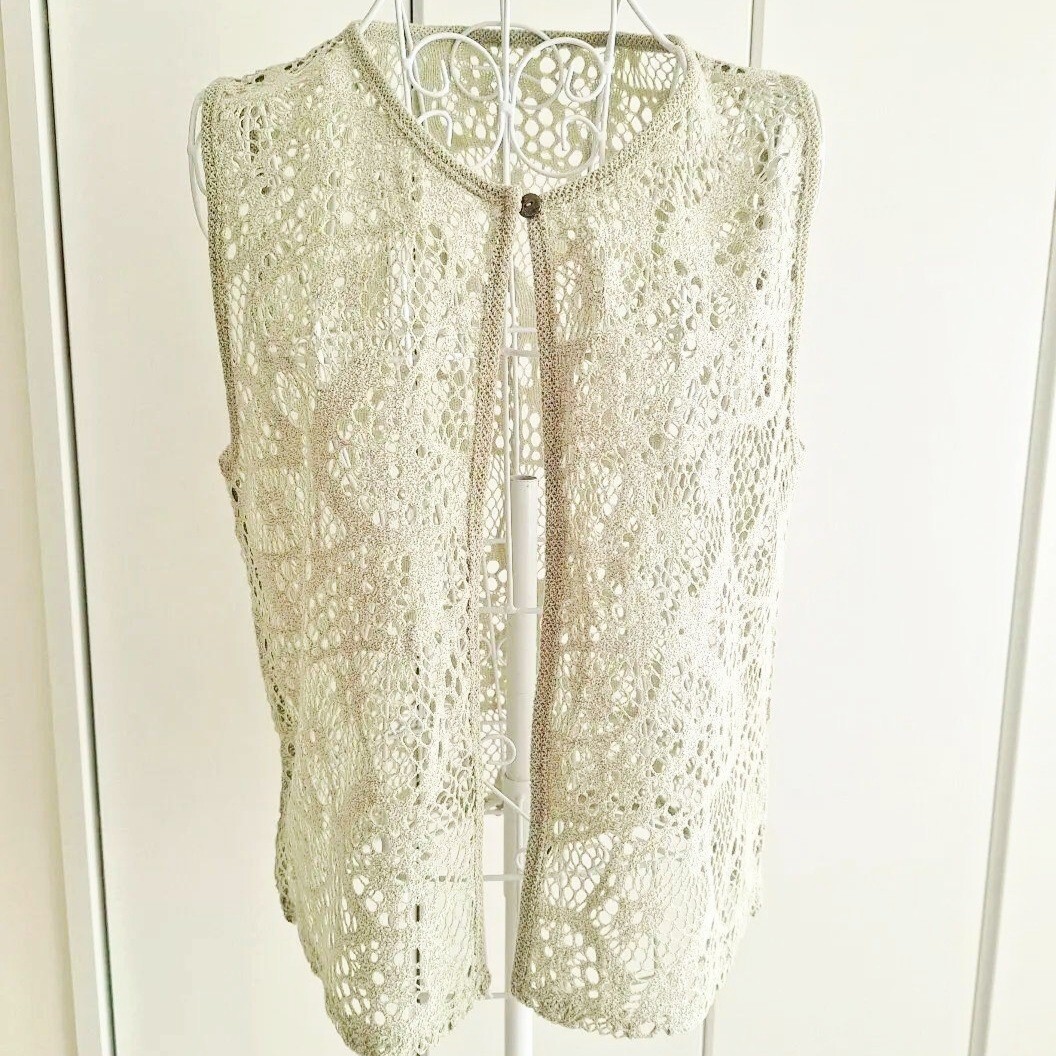 - ◆未使用◆ライトグリーン◆レース編み◆ニットベスト◆M~L◆