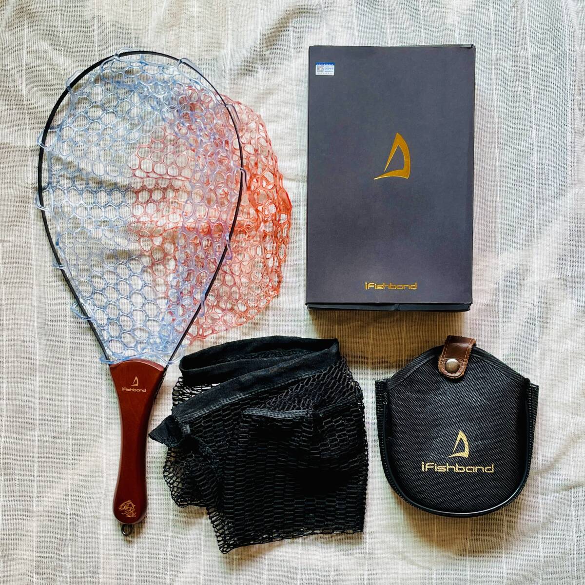 - ランディングネット インスタネット ワンタッチネット iFishband ラバー ネット タモ 折りたたみ ケース付 渓流 木製 ブルー レッド タモ