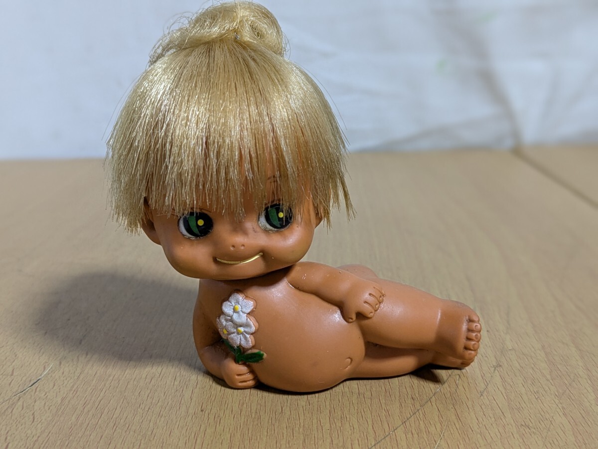 - 当時物/SEKIGUCHI セキグチ/フィギュア 褐色 金髪 横たわり 花/レトロ 人形 ソフビ