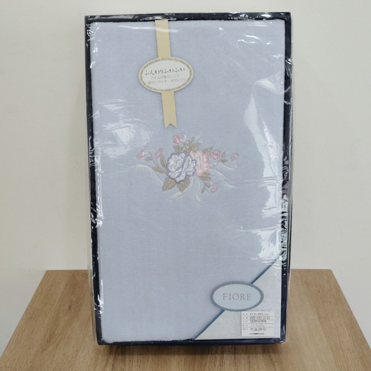 - ★未使用保管品★FIORE マイヤーボアシーツ 140×240cm 花柄 刺繍 ブルー シーツ 寝具