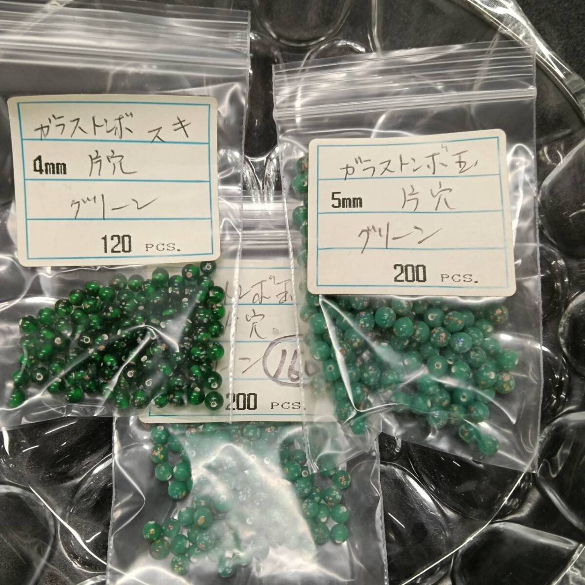 > ☆未使用 大量 片穴 チェコ トンボ玉 ガラスビーズ 58g 5mm 4mm ラウンド グリーン 緑 大粒 ヴィンテージ パーツ アクセ B-62