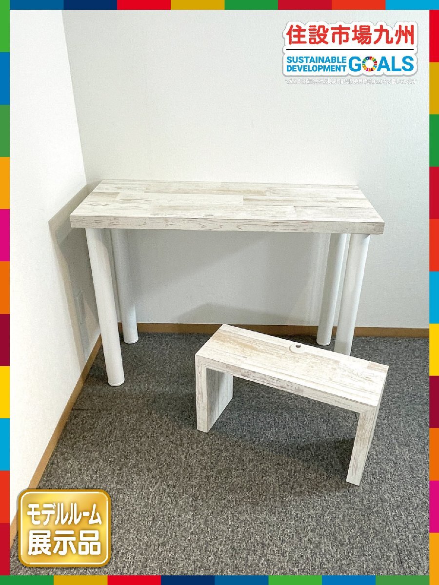 - 【福岡】W950 デスク◆机◆造作家具◆棚 サイドテーブル付◆W950 H720 D400◆モデルR展示品◆CR562_Kh