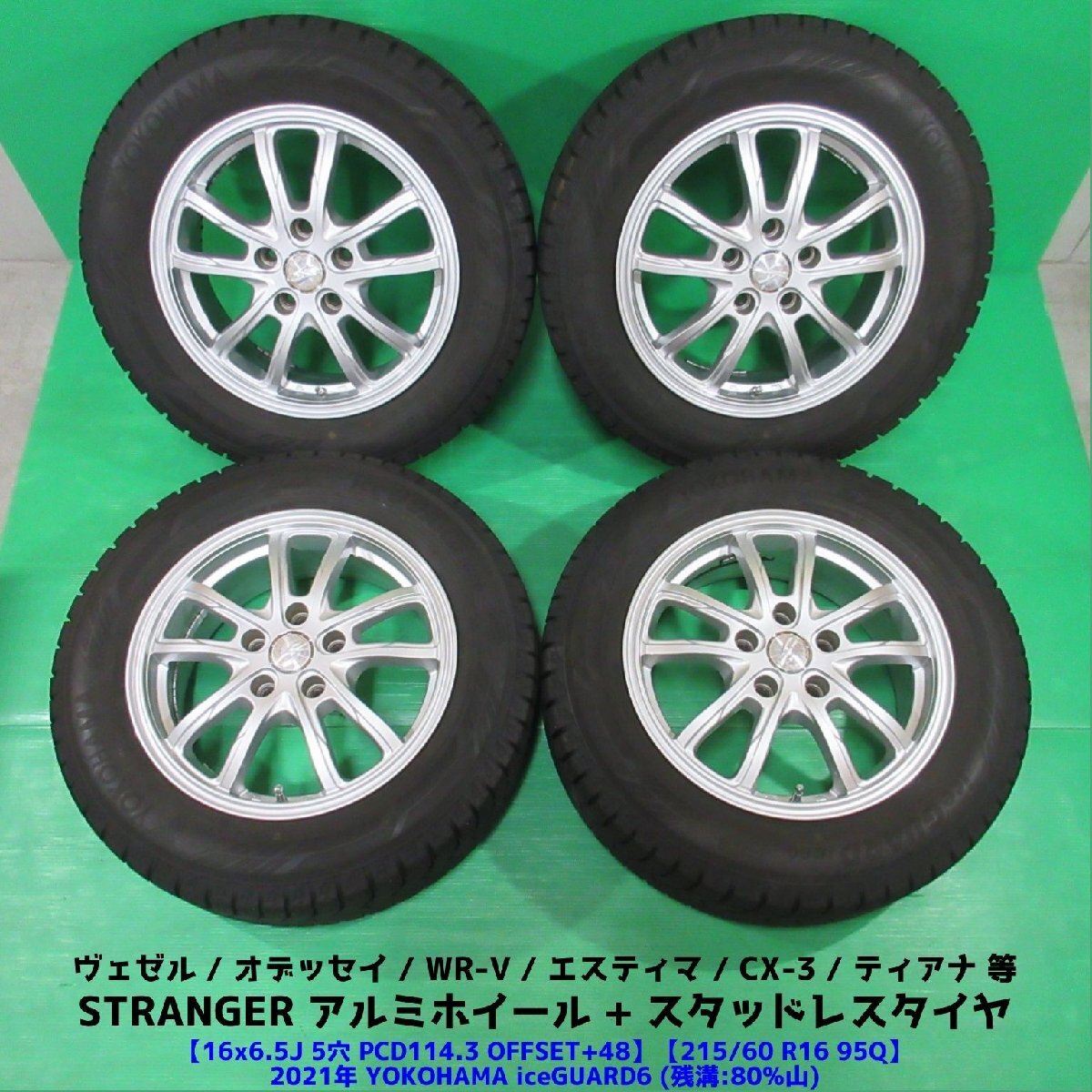 > ヴェゼル 215/60R16 バリ山スタッドレス 80%山 YOKOHAMA iceGUARD6 4本 5穴PCD114.3 +48 オデッセイ エスティマ CX-3 ティアナ 中古新潟