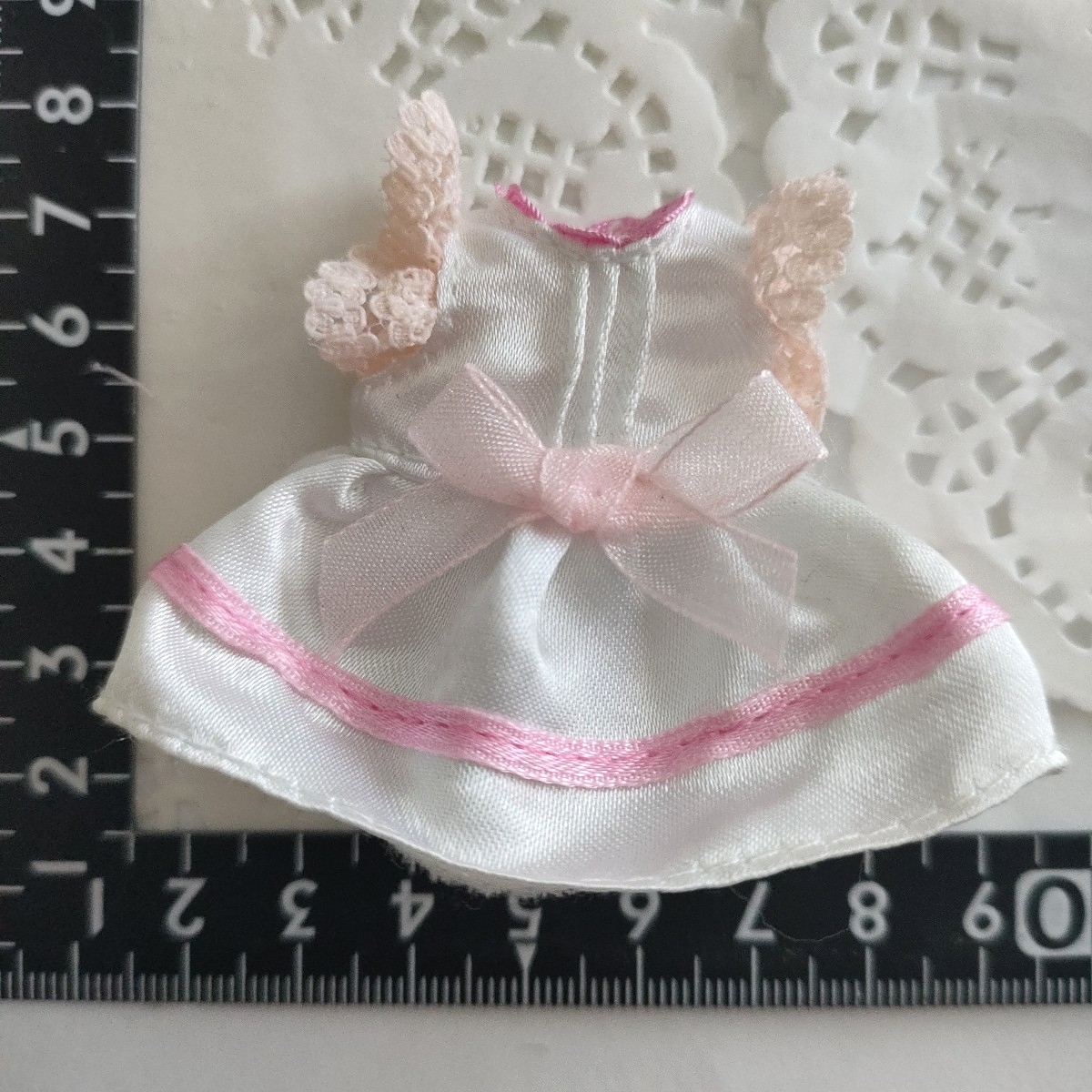 - 5r0830 ドール用 ミキマキ サイズ リカちゃんの妹 幼稚園 サイズ ワンピース 白×ピンク