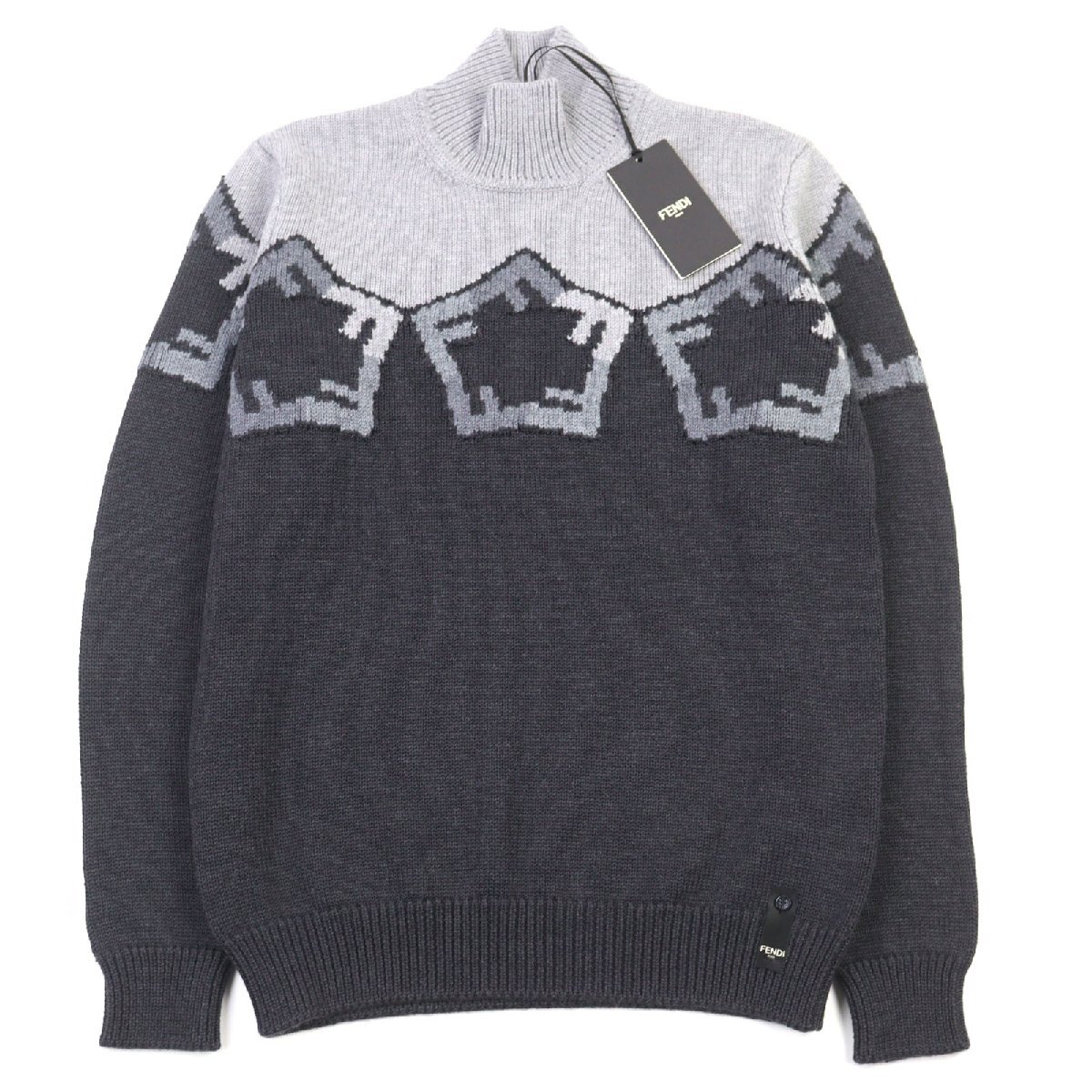 > 未使用品○FENDI フェンディ 2023年製 FZX025 ズッカスター ロゴ刺繍 ハイネック セーター ニット グレー系 48 イタリア製 正規品 メンズ