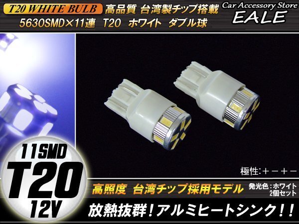 > T20 ホワイト ダブル球 極性+-+- 高輝度SMD×11連搭載 小型 コンパクト設計 2個セット B-35