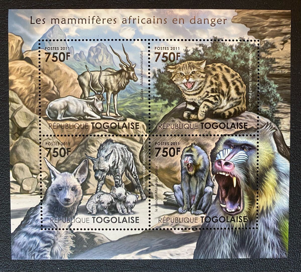 - トーゴ アミメキリン クロアシネコ シマハイエナ マンドリル 小型シート1種 未使用 NH