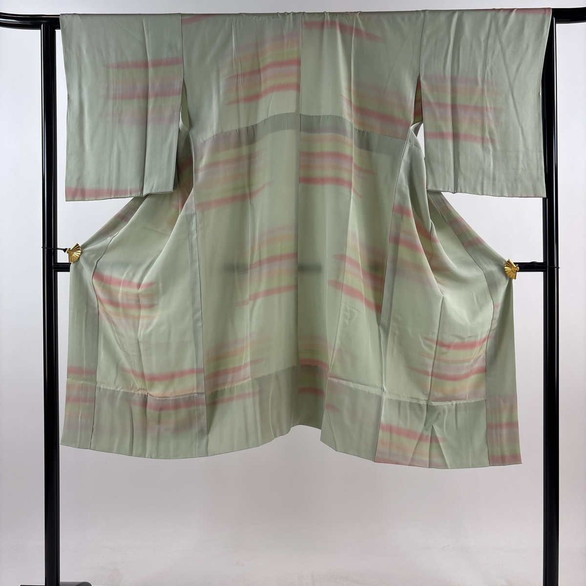 - 長襦袢 身丈119cm 裄丈63cm S 霞 ぼかし 薄緑 正絹 美品 秀品 【中古】