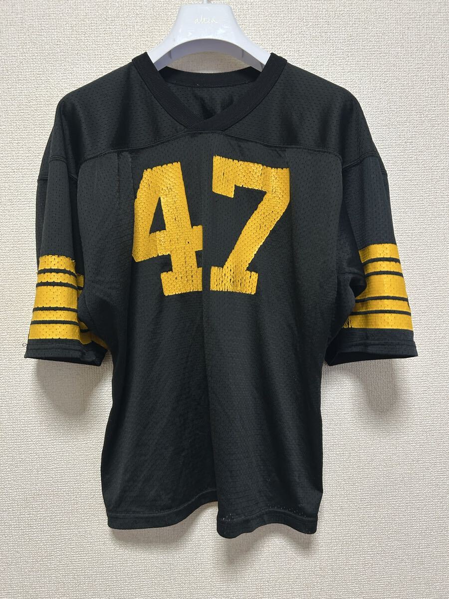 > 80's メッシュフットボール Tシャツ ナンバリングTシャツ 47 LS Vintage Football mesh shirts 黒 ×黄色 USAヴィンテージ