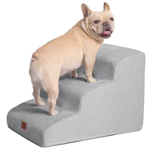 - EHEYCIGA 犬階段 3段 ライトグレー ドッグステップ ペット階段 滑り止め付き 洗える カバー取り外し(3段,ラ