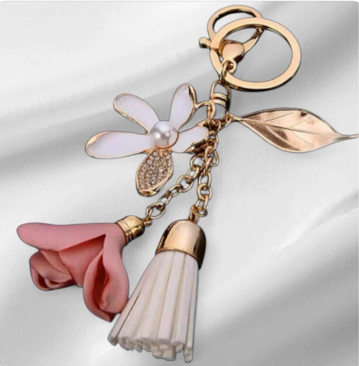 - キーホルダー バッグチャーム ゴールド 豪華 プレゼント 花 フラワー ピンク
