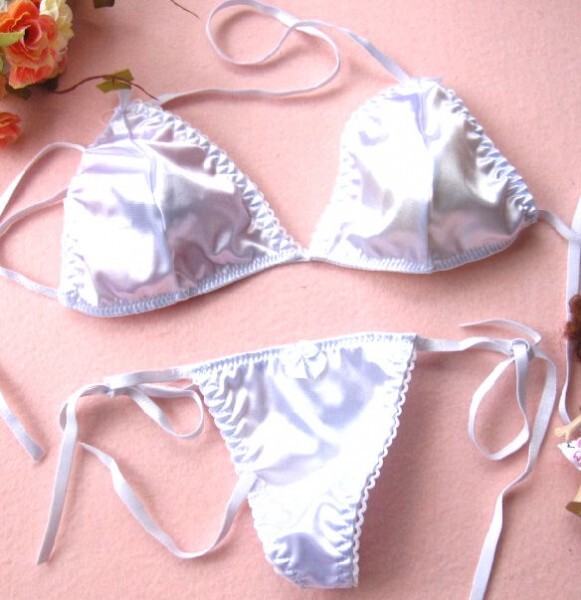 - NA サテン 系 紐 ブラ&Tバック セット マイクロビキニ ブラジャー Tバック 三角ブラ 白