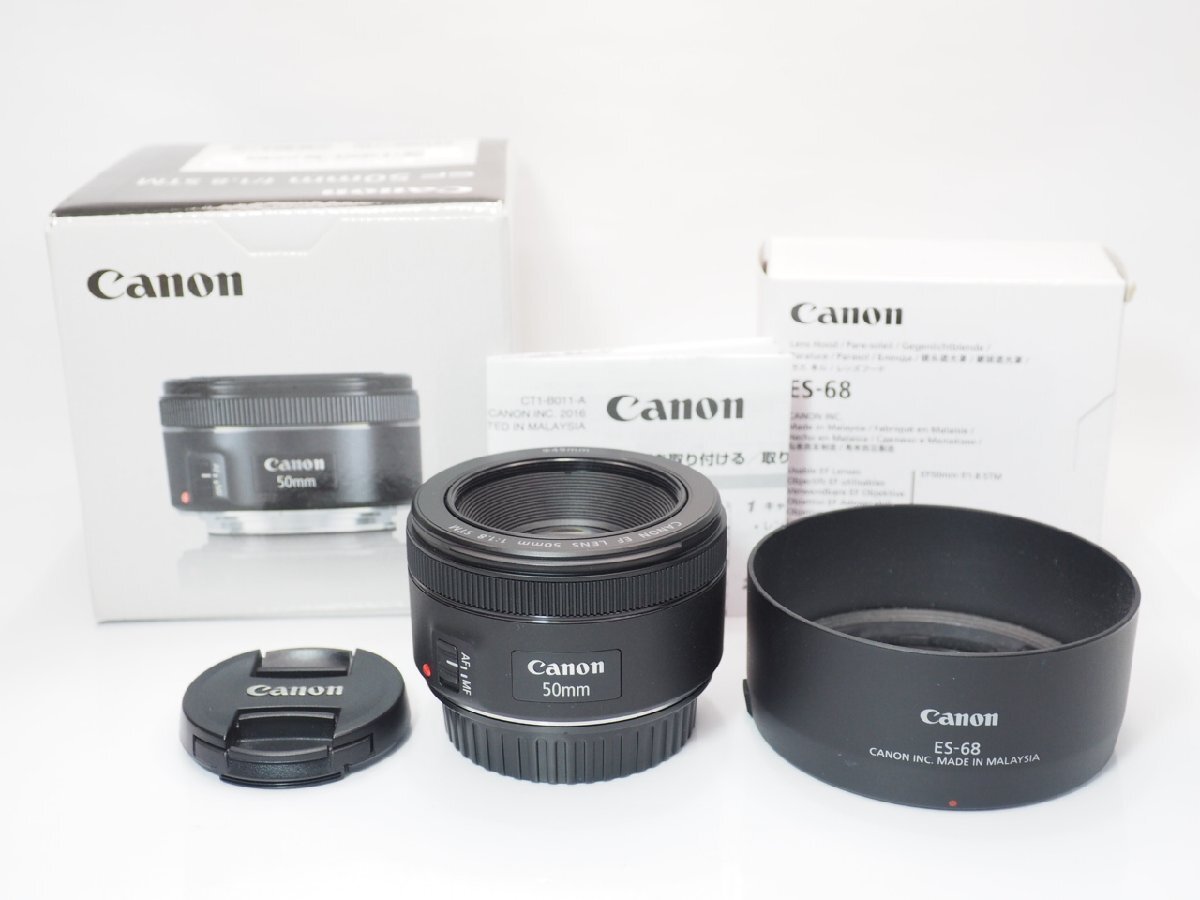 - Canon EF50mm F1.8 STM 元箱付 レンズ + ES-68純正フード付 キヤノン [管CN6375]