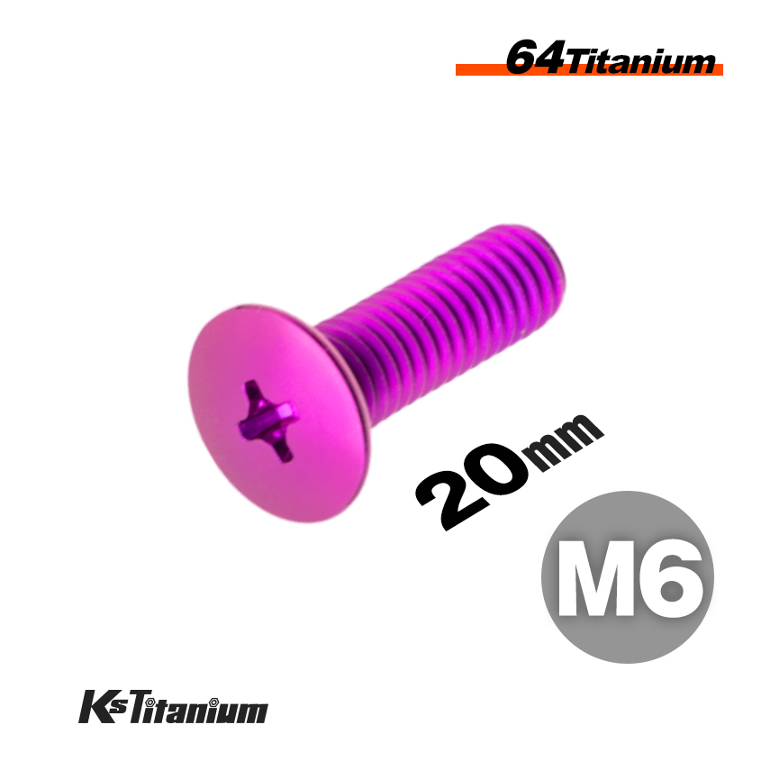 > 64チタン ボルト M6×20 全ネジ P1.0 1本売り パープル 超低頭 十字穴 プラスネジ バイク レストア パーツ チタン カスタム 旧車 レストア