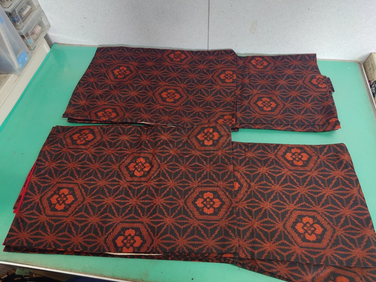- ●大39 高級 大島紬 アンサンブル 羽織 セット 亀甲 花紋 麻の葉模様 黒×朱色 同窓会 観劇 美術館 オシャレ着 レトロ アンティーク 美品④