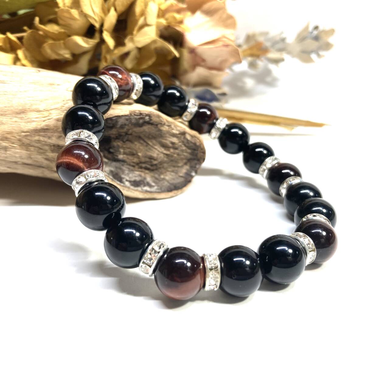 > モリオン&レッドタイガーアイ パワーストーン ブレスレット 天然石ブレス (シルバー) 10mm メンズ・レディース 厄除け 金運 ☆