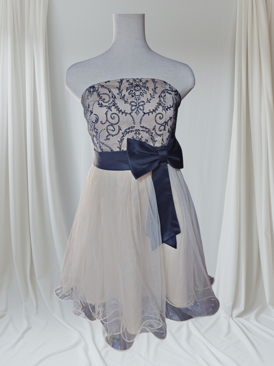 - シフォン&刺繍 ミニドレス キャバドレ M 身幅72〜90 送料無料!
