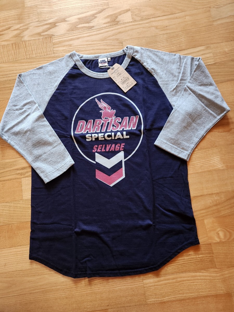 - 新作 送料込★STUDIO D'ARTISAN ステュディオ・ダルチザン 8196A ラグラン 七分袖Tシャツ 日本製 ネイビー×杢グレー L