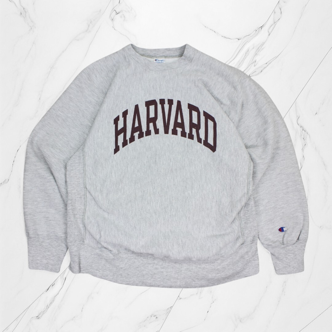 - 古着 80s USA製 Champion Reverse Weave HARVARD WARMUP Grey チャンピオン リバースウィーブ 染み込みプリント トリコタグ 【Vintage】