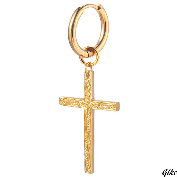 - 【サージカルステンレス316Lで金属アレルギーや変色に強い】 ハワイアンジュエリー メンズ レディース フープピアス クロス ゴールド