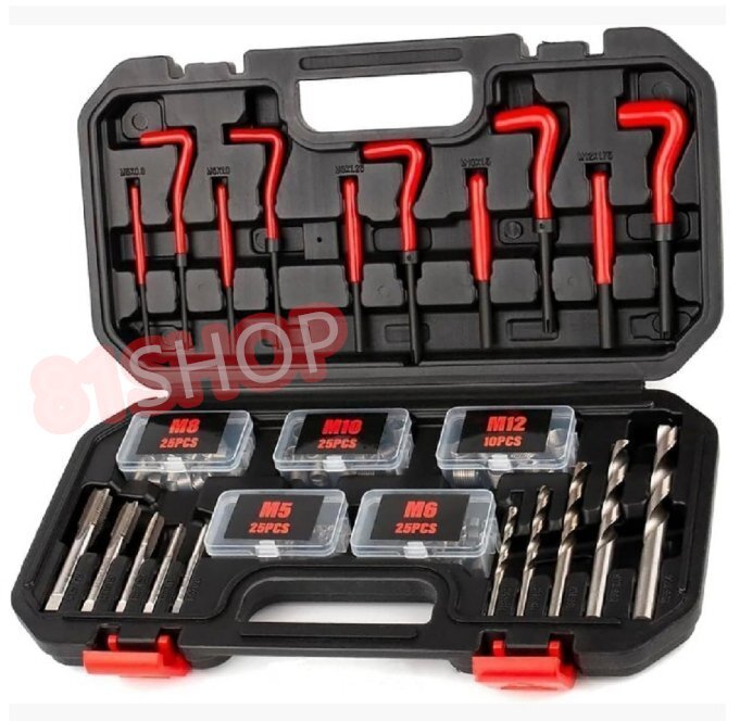 - ネジ穴 再生 セット リコイル ヘリサートキット 修正 修復 補修 キット スレッド修理キット M5 M6 M8 M10 M12 131pcs