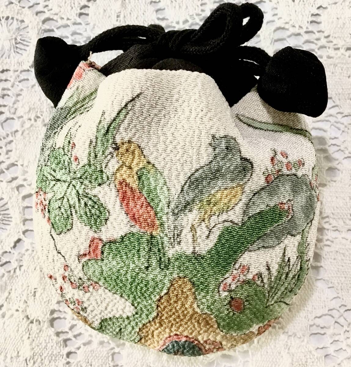 - 古布876ソフト小袋・絹(縮緬・鳥や蝶々・残り僅)時代着物地