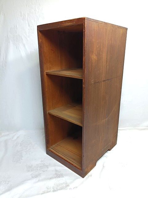 - 希少 古書 本棚 三段 木製 高さ59×横23.6×奥行き31cm/経本 狂歌 浮世絵本 古本 花台 木箱 レトロ
