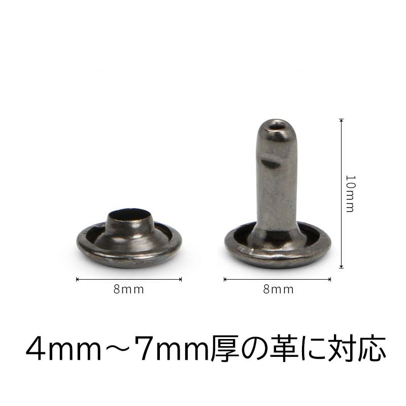 - レザークラフト 両面カシメ 100組セット (頭8mmx足10mm ブラック)