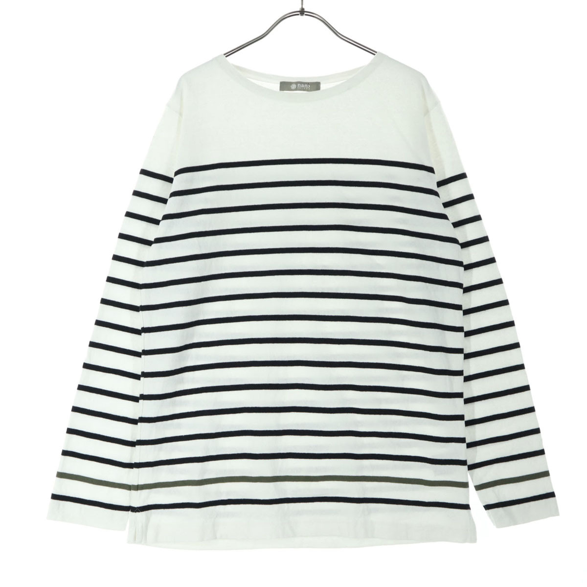 - nano universe ナノユニバース ボーダー柄 長袖 Tシャツ L ホワイト系 ロンT バスクシャツ メンズ