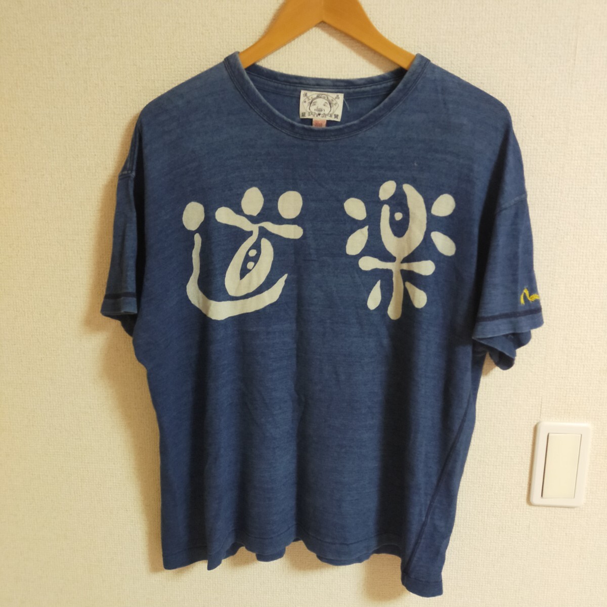 - EVISU エヴィス 道楽 カモメ プリント 半袖Tシャツ デニム風 42(XL) インディゴブルー