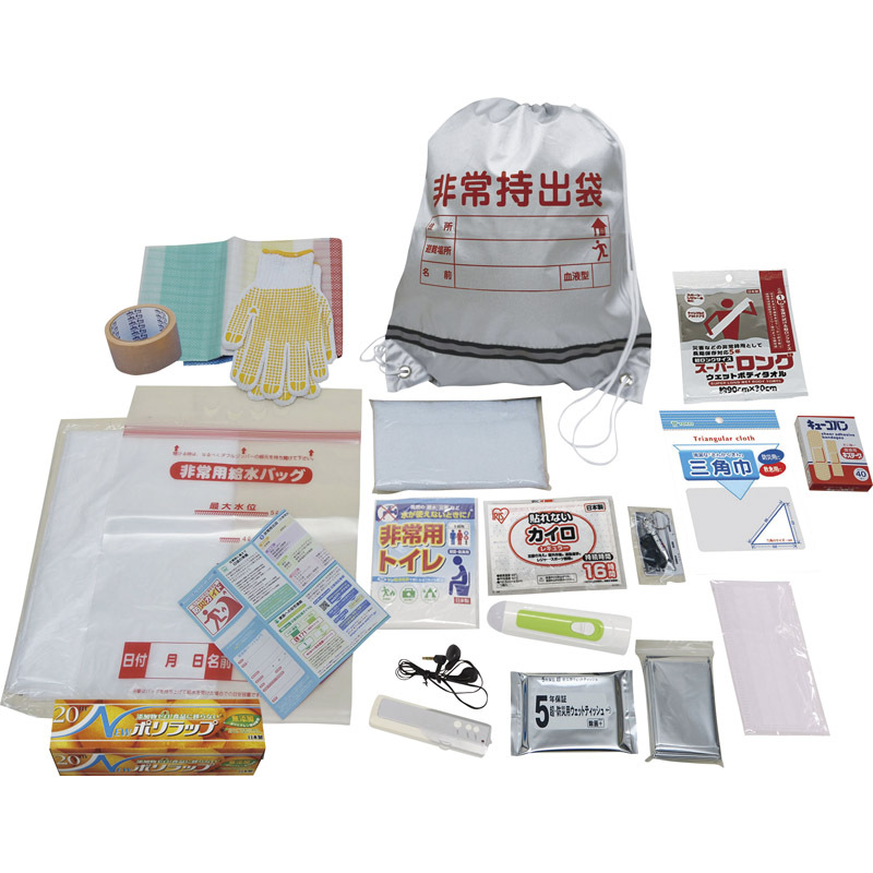 〇注意事項・送料800円が販売価格に含まれています・お取り寄せ商品です。弊社にて手配後、メーカー・卸業者からの直送になります。・まれにメーカー欠品、出荷遅延等が発生致します。問題発生時は別途メールにてご連絡致します。・配送方法の指定、日時指定、置き配、ギフト対応、他商品との同梱配送などは対応できません。・まとめ買いや複数購入の場合は通常より発送に時間が掛かる場合がございます・複数個口の場合、2階以上への搬入ができない場合があります。(その場合は1階での受け渡しとなります)・大型連休、お盆、年末年始などは発送をお休みさせていただく場合がございます・メーカー都合により、パッケージは予告なく変更される場合がございます・梱包用のダンボールはリサイクル品を使用させていただきます。・注文に関するご連絡(注文確定通知・発送通知など)はメールでご案内させていただきます※商品ページの内容について、少しでもご不明な点などがございましたら購入前に一度ご連絡ください〇商品説明あらゆるギフトシーンにおすすめです!地震や台風などの非常時の備えに。〇商品仕様●内容:非常袋440×380mm、非常用給水バッグ5L、ゴミ袋45L10枚、ハンディライト(電池別売)、ラップ、非常用トイレ、防災用ウエットティッシュ20枚、ウェットボディタオル、防寒シート、タオル、すべり止め手袋、レジャーシート1畳用、ホイッスル、マスク、カイロ、救急絆創膏2サイズ40枚、コンパクトFMラジオ(電池別売)、布テープ、三角巾、防災ガイド規格●ダンボール箱入(353×140×262mm) 1350g●材質:非常袋:ポリエステル●加工地:中国(出典:株式会社 八大)