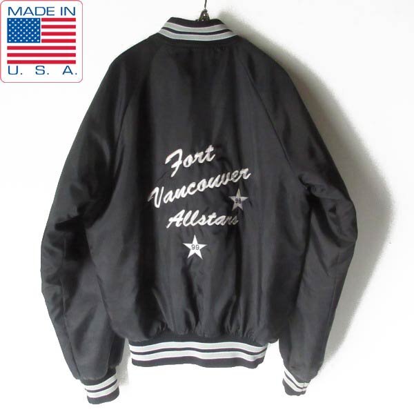- 90s USA製 HARTWELL 両面刺繍入り スタジャン 黒 L程度 ブラック アメリカ製 ビンテージ D151-18-0058ZVW