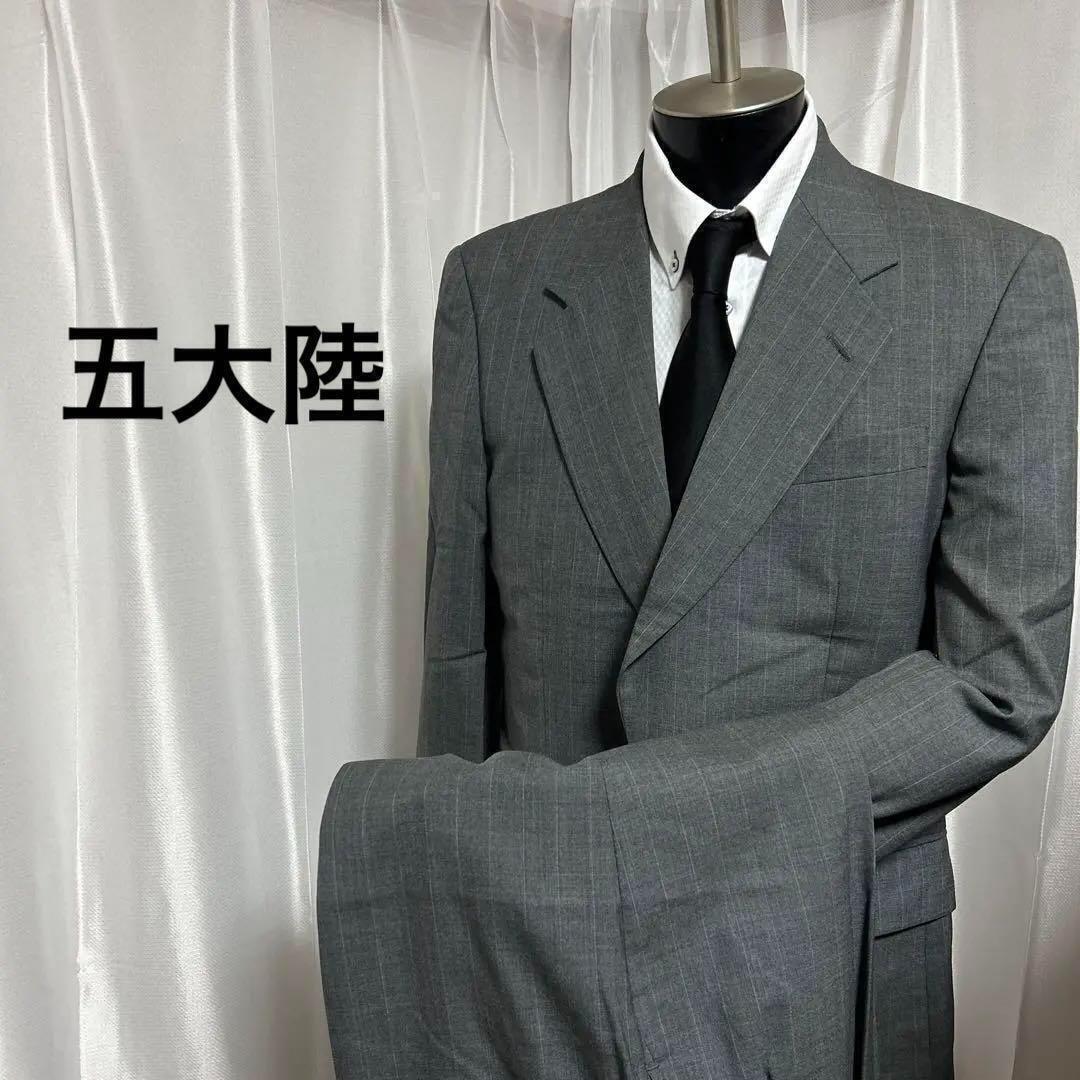 - ネームあり 背抜き ONWARD 五大陸 オンワード スーツ グレー 6M 毛100% 125