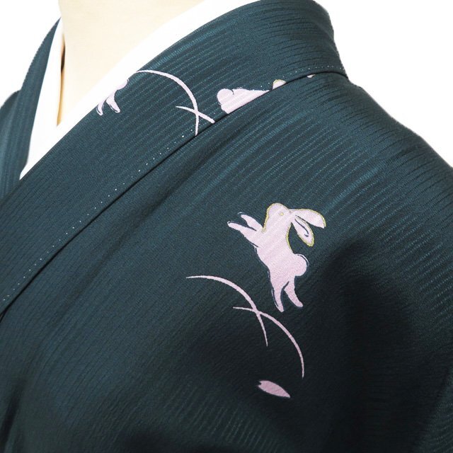 - 小紋 着物 中古 リサイクル 正絹 袷 カジュアル 芝草に兎模様 鉄色 多色 金 身丈159cm 裄66.5cm M きもの北條 A1266-1