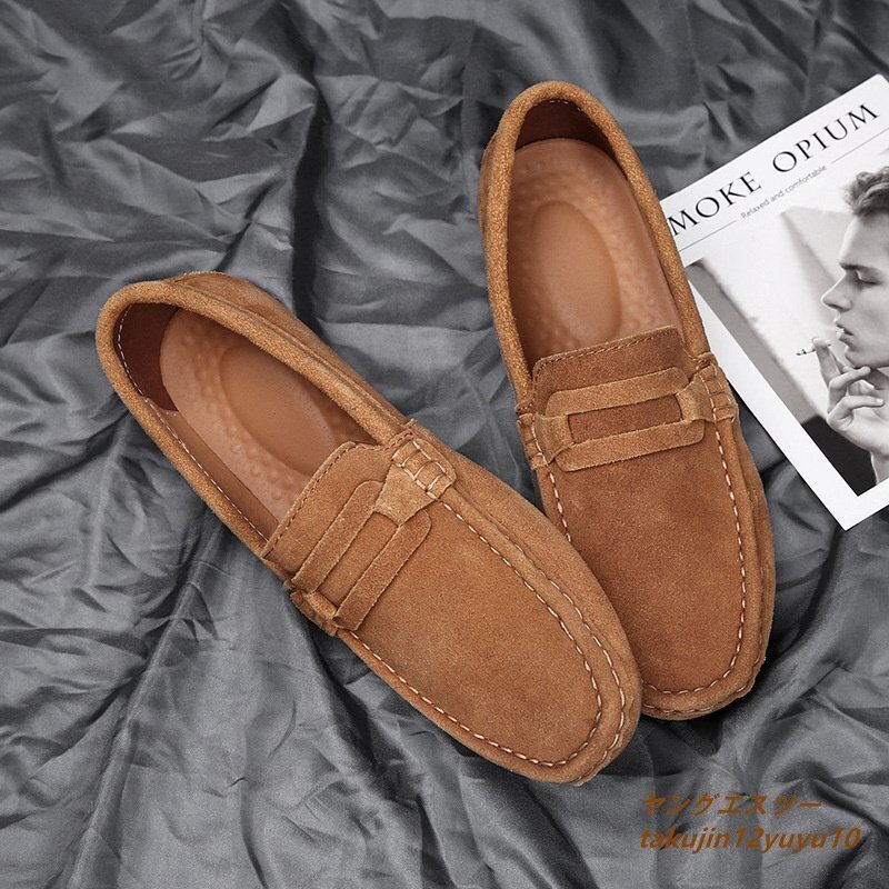 - 人気新品■ローファー スリッポン 高級牛革 レザーシューズ メンズ ドライビングシューズ 本革 スエード革 快適 お洒落四色ブラウン 27.0cm