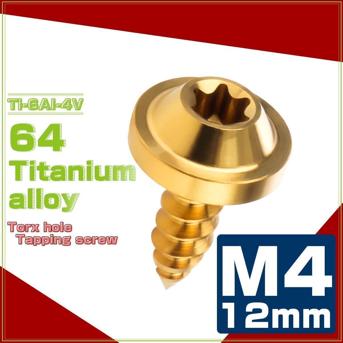 - 64チタン M4×12mm タッピングネジ トルクス穴 フランジ付き ビス ゴールド JA1020