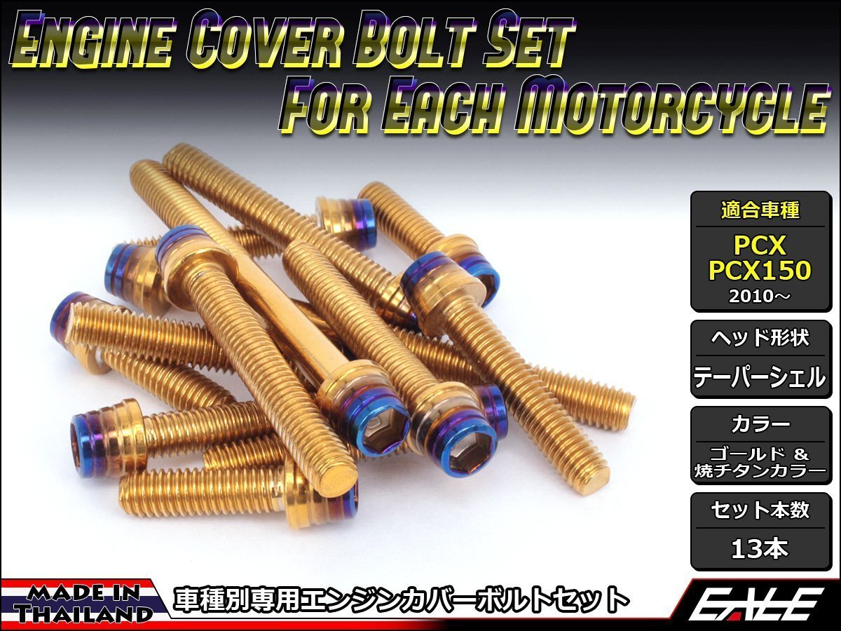 - PCX/PCX150用 エンジンカバー ボルト13本セット ステンレス製キャップボルト使用 CTCテーパーシェルヘッド ゴールド&焼チタンカラー TB6062