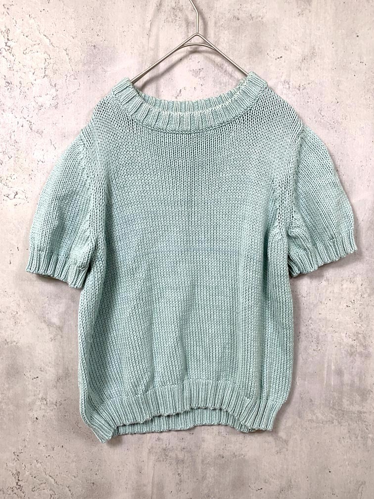 - ゆうパケットOK maglificio cecconi aga アーガ イタリア製 ハーフスリーブ サマー ニット セーター sizeM/緑 ■■