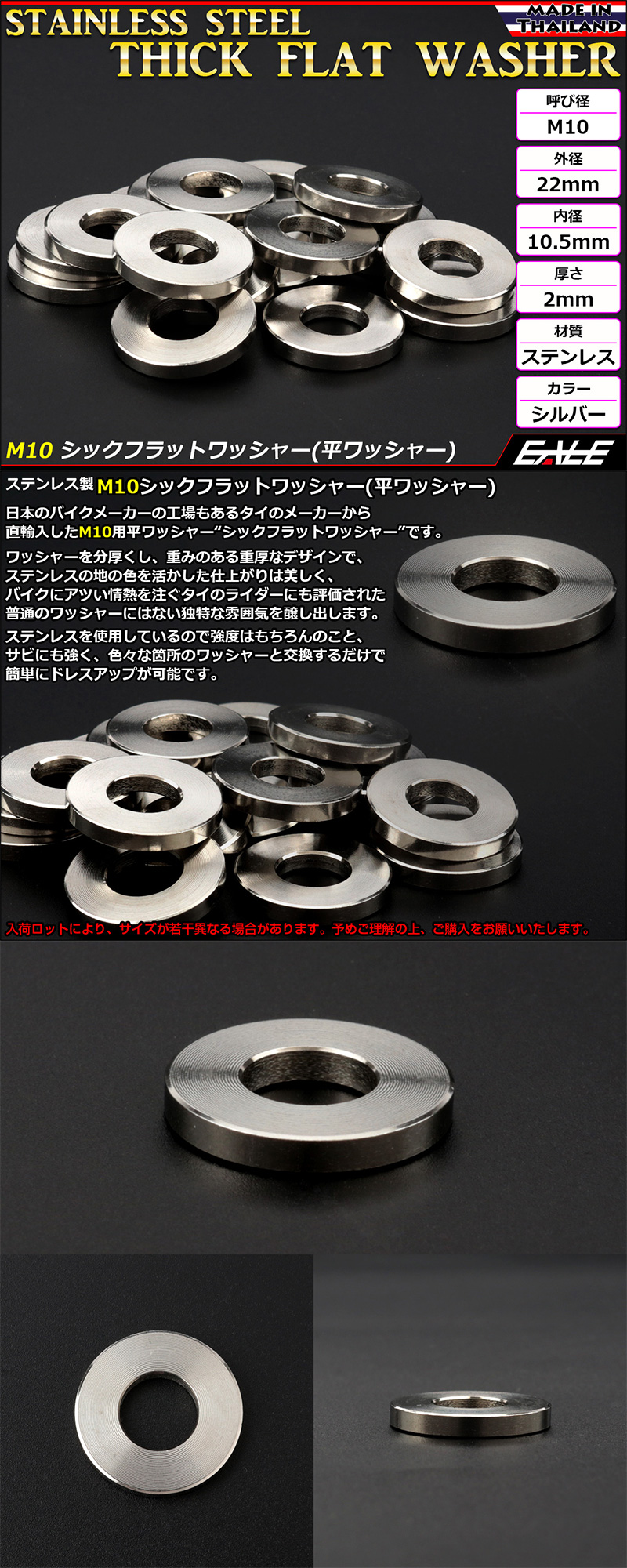 - SUSステンレス M10 平ワッシャー シックフラットワッシャー シルバー 外径22mm 厚さ2mm TF0003